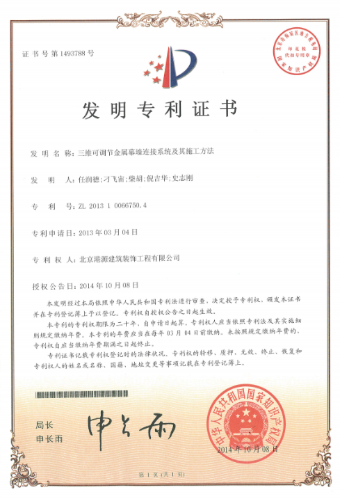 發明專利-三維可調節金屬幕墻連接系統及其施工方法