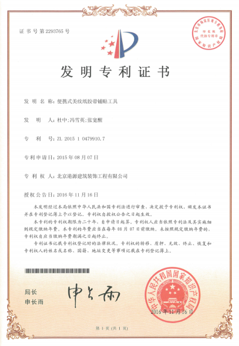發明專利-便攜式美紋紙膠帶鋪貼工具