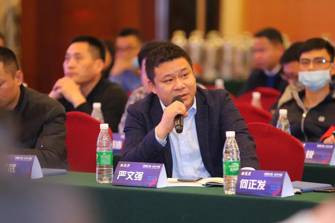 ▲港源裝飾董事長符劍平出席會議并發(fā)言