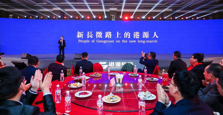 當天,公司以這次年度聚會為契機,把分布于全國25個地區(qū)的全體港源人召集“回家”,一起吃了一頓港源裝飾的年夜飯。