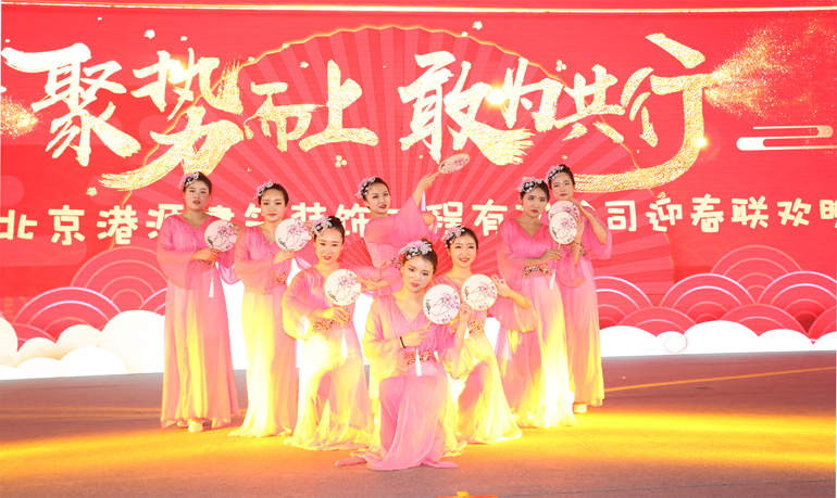 年會結束后,精彩紛呈的迎春聯(lián)歡晚會拉開了帷幕。晚會上,13個文藝節(jié)目均由港源裝飾各單位選送。