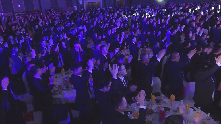 在年會上,一場特殊的跨年儀式,將全體港源人的心牢牢地綁在了一起。現(xiàn)場的港源人全體起立,默契地伸出雙手,用整齊劃一的跨年戰(zhàn)吼,吼出了屬于港源的驚天氣勢,吼出了向著2019載譽出征的昂揚斗志!