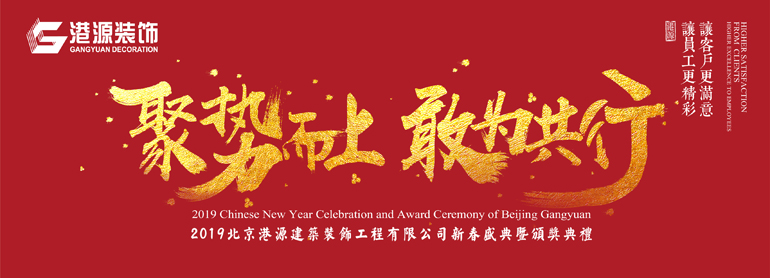 2019年1月30日,正值萬象更新之際,港源裝飾成立26年來規(guī)模最大的一次全員聚會——聚勢而上,敢為共行2019港源裝飾新春盛典暨頒獎典